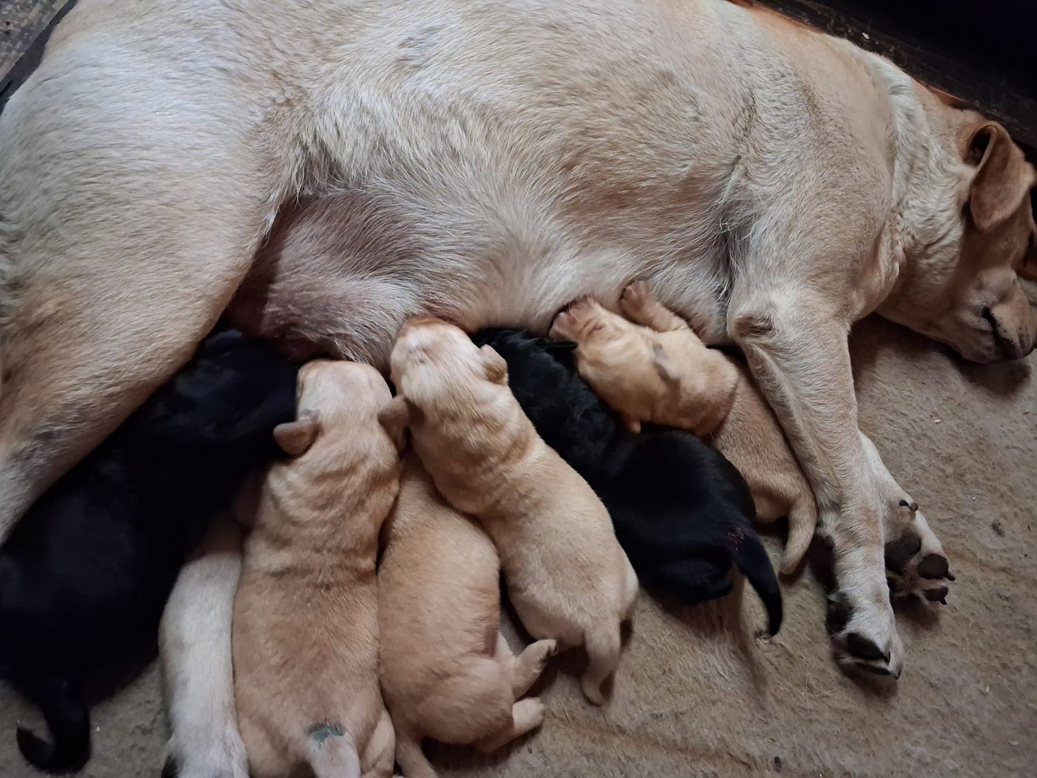 Am 16.11.2025 hat Malou zwei schwarze Labrador-Welpen von Hunter bekommen.